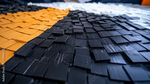 © Narongsag, Obraz premium Abstract Black White Gold Geometric Pattern Texture Background