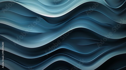 © Arieswanto, Obraz premium Abstract Blue and Black Wavy Pattern