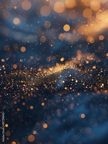 © Johannes, Obraz premium abstract blue and gold background with particles. golden light sparkle and star shape on dark endless space wallpaper. Christmas theme. Shiny texture, galaxy concept - generative ai
