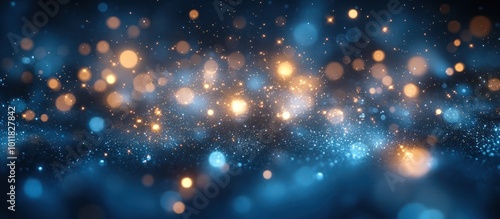 Obraz premium Abstract blue and gold bokeh background with sparkling lights.