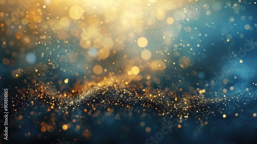 Fototapeta premium Abstract blue and gold bokeh background with sparkling lights.