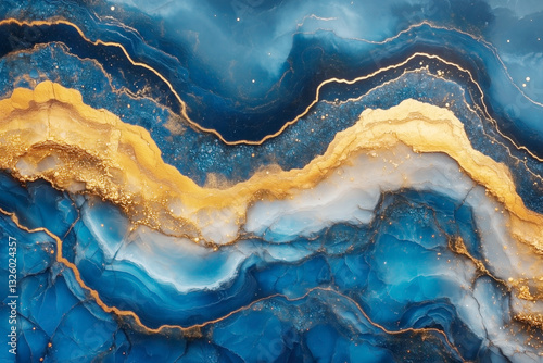 Fototapeta premium Abstract Blue and Gold Fluid Art