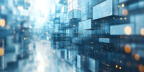 © Ruqqq, Obraz premium Abstract blue and gold geometric cube structure.