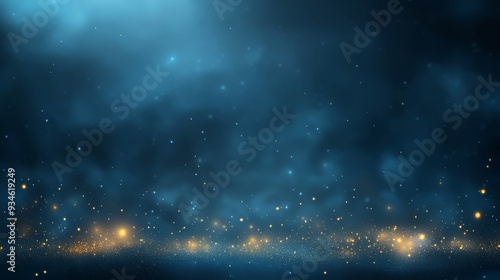 Naklejka premium Abstract Blue and Gold Glitter Background with Bokeh Lights