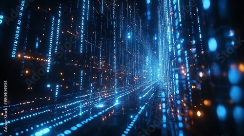 Fototapeta premium Abstract blue and gold light trails create a shimmering, dynamic pattern.