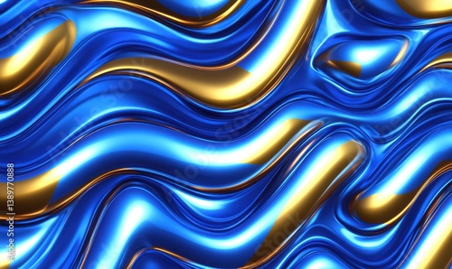 © Azril, Obraz premium Abstract blue and gold liquid wave background, ideal for design