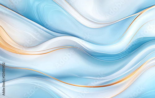 © Tondone, Naklejka premium Abstract blue and gold marble texture background with flowing waves, creating serene and elegant atmosphere. Ideal for design projects and artistic expressions