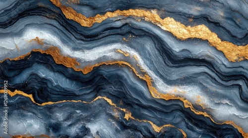 Fototapeta premium Abstract blue and gold marble texture with flowing patterns, suitable for...