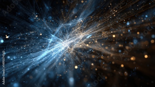 Naklejka premium Abstract blue and gold particle background. Perfect for technology, science, or fantasy designs. Ideal for websites, banners, and presentations.