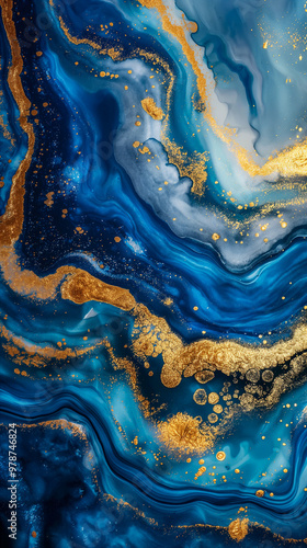 Fototapeta premium Abstract Blue and Gold Swirls Painting. Generative AI