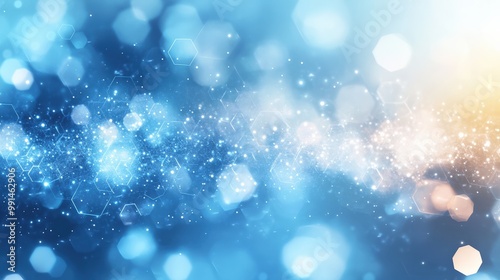 © Nuchylee, Obraz premium Abstract blue and golden bokeh background, perfect for creating a dreamy atmosphere in design and photography projects.