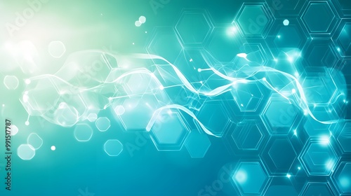 Fototapeta premium Abstract Blue and Green Background with Hexagons and Glowing Lines