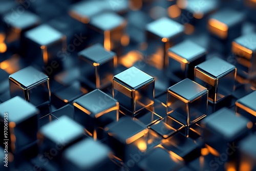 Obraz premium Abstract blue and orange 3D cubes pattern, digital art background