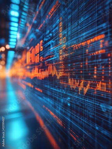 Obraz premium Abstract blue and orange digital display with data and graphs