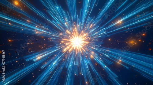 Naklejka premium Abstract Blue and Orange Fireworks Core Art