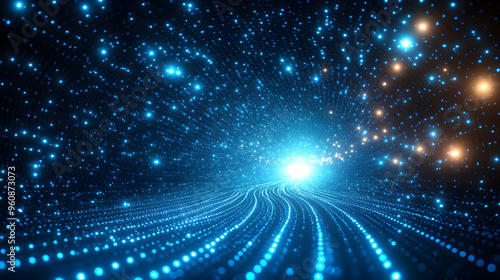 © suwatthana, Fototapeta premium Abstract Blue and Orange Glowing Lights Tunnel