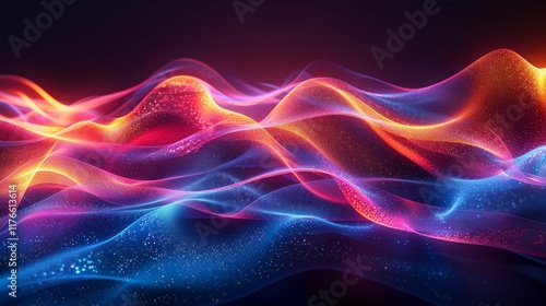 Fototapeta premium Abstract blue and orange glowing waves with sparkling particles. AI...