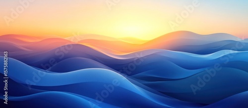 © Ketua, Fototapeta premium Abstract Blue and Orange Landscape with Sun