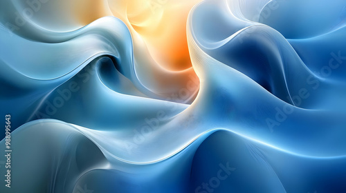 © Siasart, Fototapeta premium Abstract Blue and Orange Wavy Lines - 3D Motion Graphics
