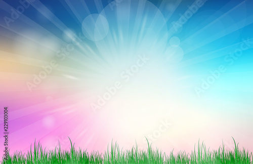 © Go Ahead, Obraz premium Abstract Blue and pink blurred gradient background. Nature blurred bokeh background with sunlight and grass.