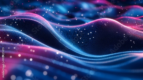 Fototapeta premium Abstract Blue and Pink Wavy Surface with Glimmering Lights