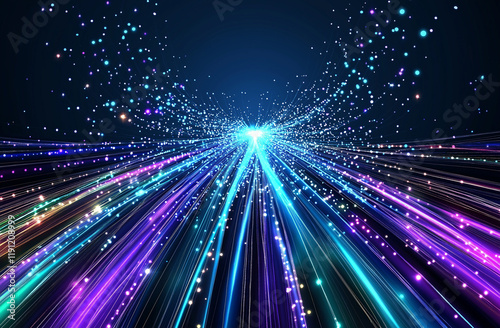 © Muhammad, Obraz premium Abstract Blue and Purple Glowing Light Lines on Dark Background for Vector Presentation Design and Elegant Digital Artwork