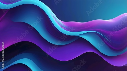 © Rafli, Fototapeta premium Abstract blue and purple liquid wavy shapes futuristic banner. Glowing retro waves vector background