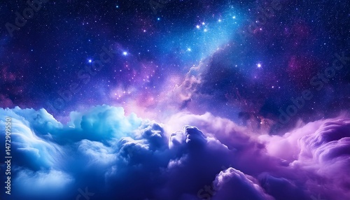 © Selene, Fototapeta premium abstract blue and purple nebula with clouds against a starry background banner