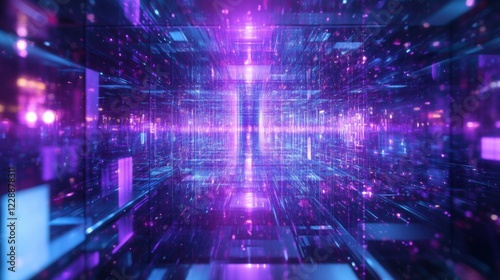 © Nayyab, Fototapeta premium Abstract blue and purple technology background with circuitry, digital connections, and glowing lines representing high-tech innovation and futuristic digital desi