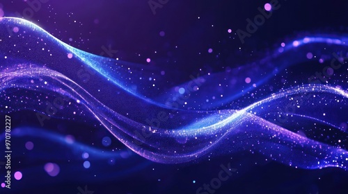 Fototapeta premium Abstract Blue and Purple Wave with Glimmering Particles