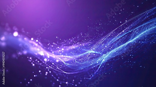Fototapeta premium Abstract Blue and Purple Wave with Glowing Particles