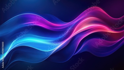 Obraz premium Abstract Blue and Purple Wavy Lines on Dark Backdrop with Luminous and...