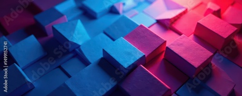 © Jaipak, Obraz premium Abstract blue and red geometric shapes forming course modules, vector, online, element