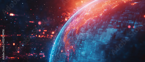 Obraz premium Abstract blue and red globe with lights.