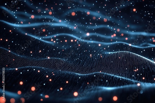 © STwul, Obraz premium Abstract blue and red particle wave background.