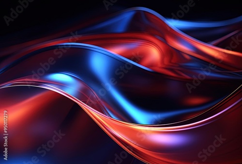 © vizual, Fototapeta premium abstract blue and red wavy ribbons with red lines