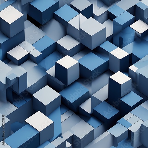 Obraz premium Abstract Blue and White Cubes 3D Geometric Pattern,