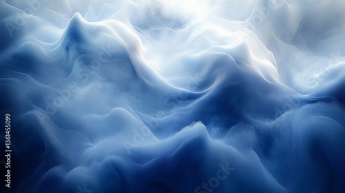Obraz premium Abstract blue and white flowing waves create a serene ethereal landscape...