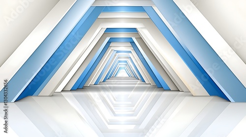 © Kalyarat Mnakla, Obraz premium Abstract Blue and White Geometric Corridor Modern Architecture 3D Design Futuristic Tunnel