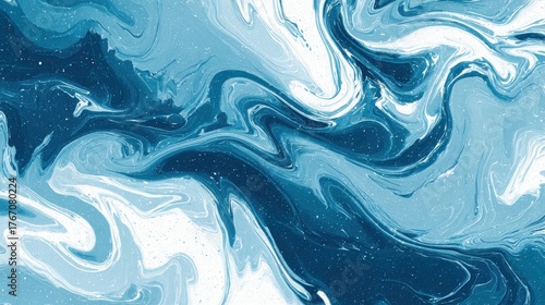 Obraz premium Abstract blue and white marble texture with fluid art for background use