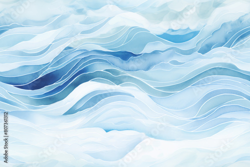 Fototapeta premium Abstract Blue and White Water Wave Watercolor Painting
