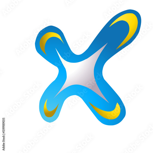 Obraz premium Abstract blue and yellow shape with a glossy finish, suggesting motion and...