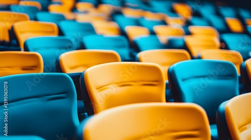 Fototapeta premium Abstract Blue and Yellow Stadium Seats Rows