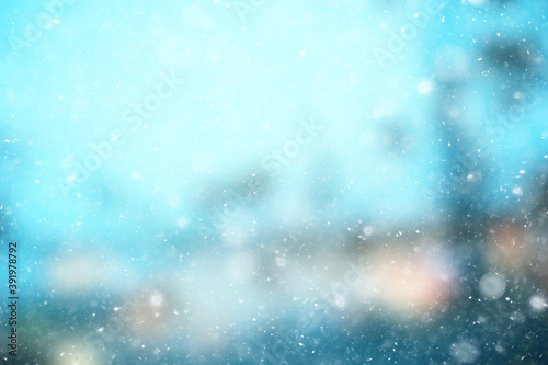 © kichigin19, Fototapeta premium abstract blue background snow snowflakes, new year, glow design