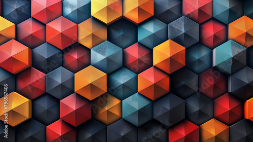 © ak159715, Obraz premium Abstract blue background with a seamless pattern of 3D cubes,Colorful Geometric Triangle Mosaic Texture Art
