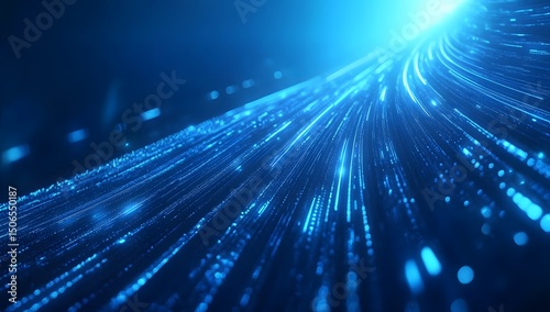 © Anyket, Fototapeta premium Abstract blue background with blurred speed lines, a road, and a highway in motion. Blue abstract background with fast-moving trails for the design of a digital technology website banner,