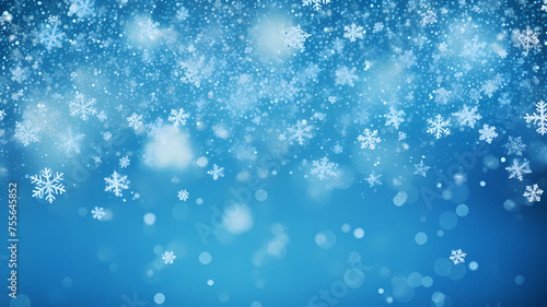 © Raffaza, Fototapeta premium abstract blue background with bokeh lights and falling snowflakes