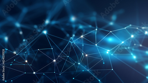 Obraz premium Abstract blue background with dot connecting into a geometric web network shape. Generative AI