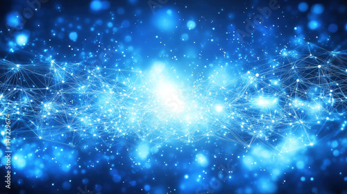 Fototapeta premium Abstract blue background with glowing connection lines and dots, a technology...