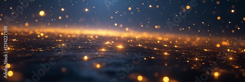 © Ilja, Naklejka premium Abstract Blue Background With Glowing Fairy Lights, Bokeh Effect, Festive Christmas Holiday Backdrop